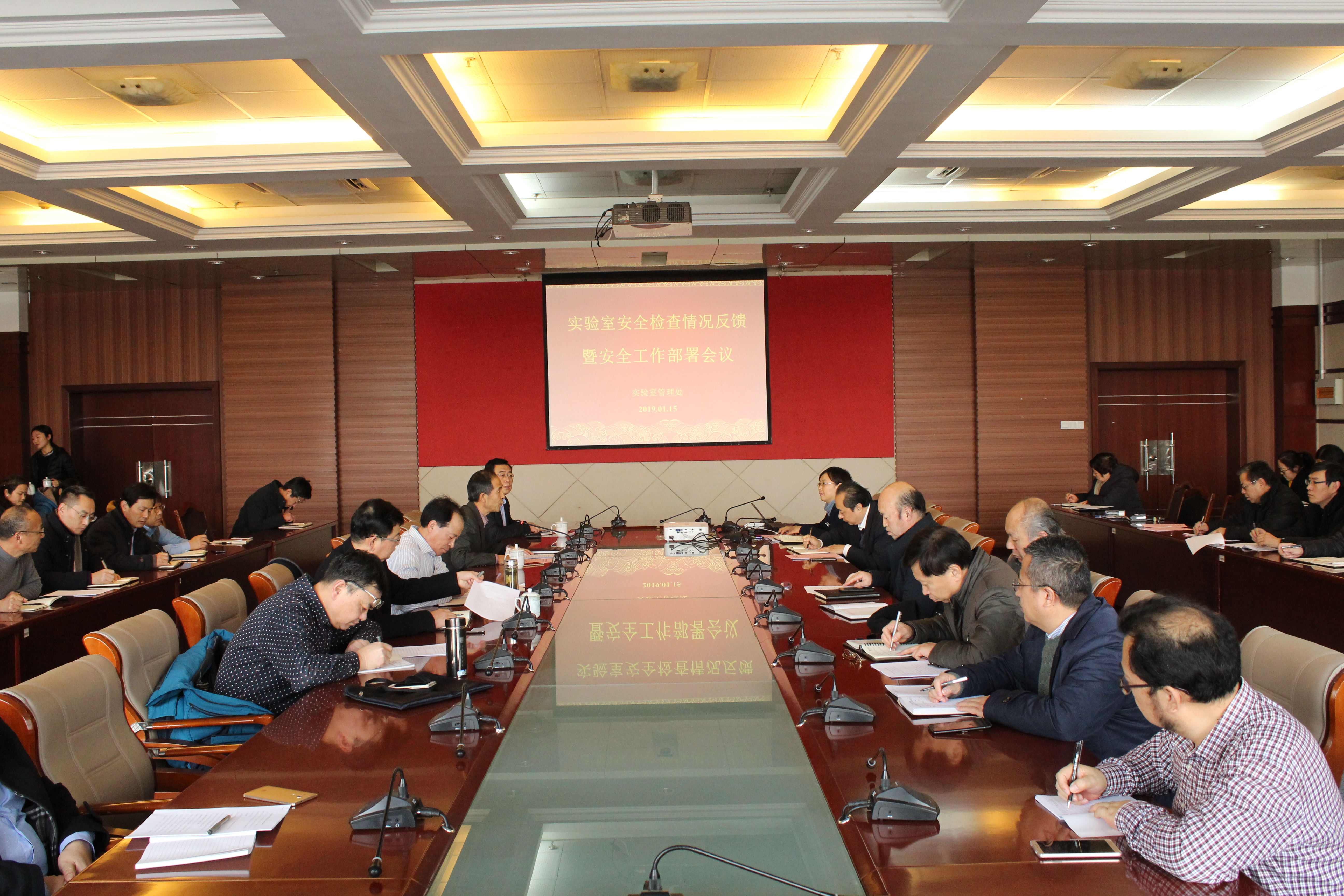 1月15日,88858cc永利官网组织召开2018年度88858cc永利官网安全检查情况反馈暨下一步88858cc永利官网安全工作部署会议。校党委副书记王庆军,副校长刘新民、原永兵出席会议并讲话,各学院院长、分管院长、88858cc永利官网中心主任以及88858cc永利官网管理处相关人员参加会议。会议由副校长原永兵主持。