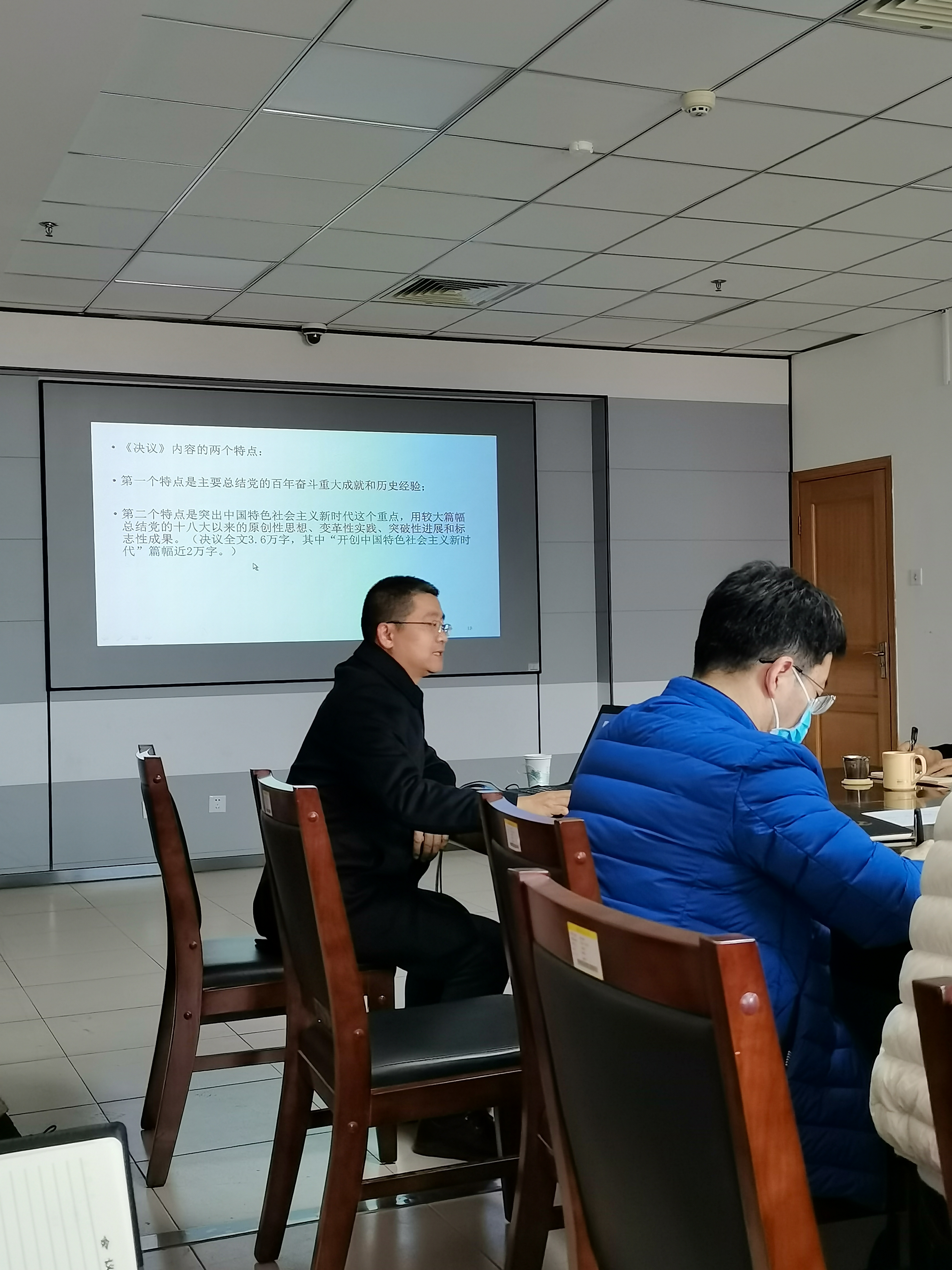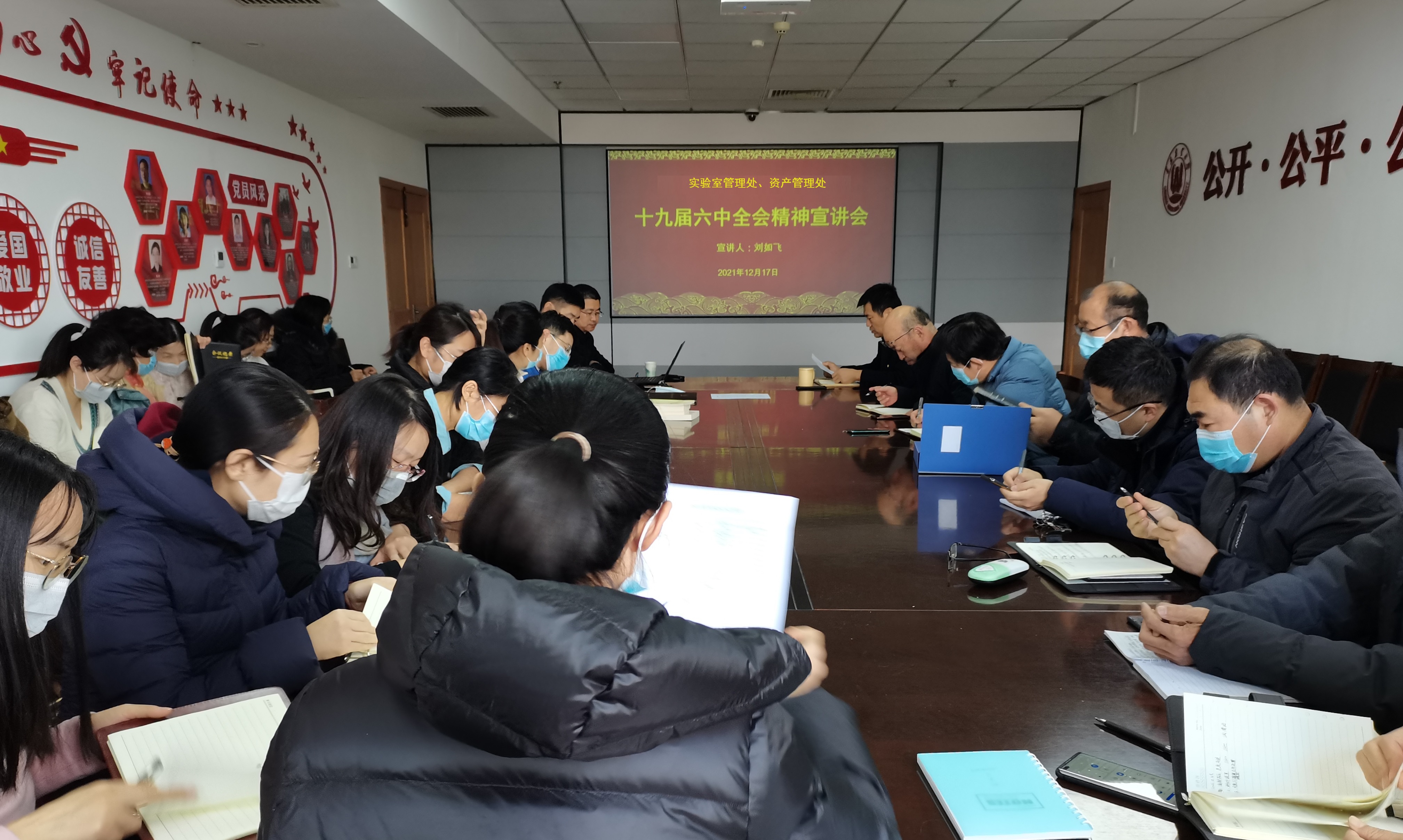 12月17日下午,88858cc永利官网管理处、资产管理处在主楼1302会议室举行党的十九届六中全会精神专题宣讲会。宣讲会由88858cc永利官网管理处党支部书记周顺主持,马克思主义学院副教授、青岛市委宣传部专家宣讲团成员刘如飞主讲。88858cc永利官网管理处、资产管理处全体职工参加会议。