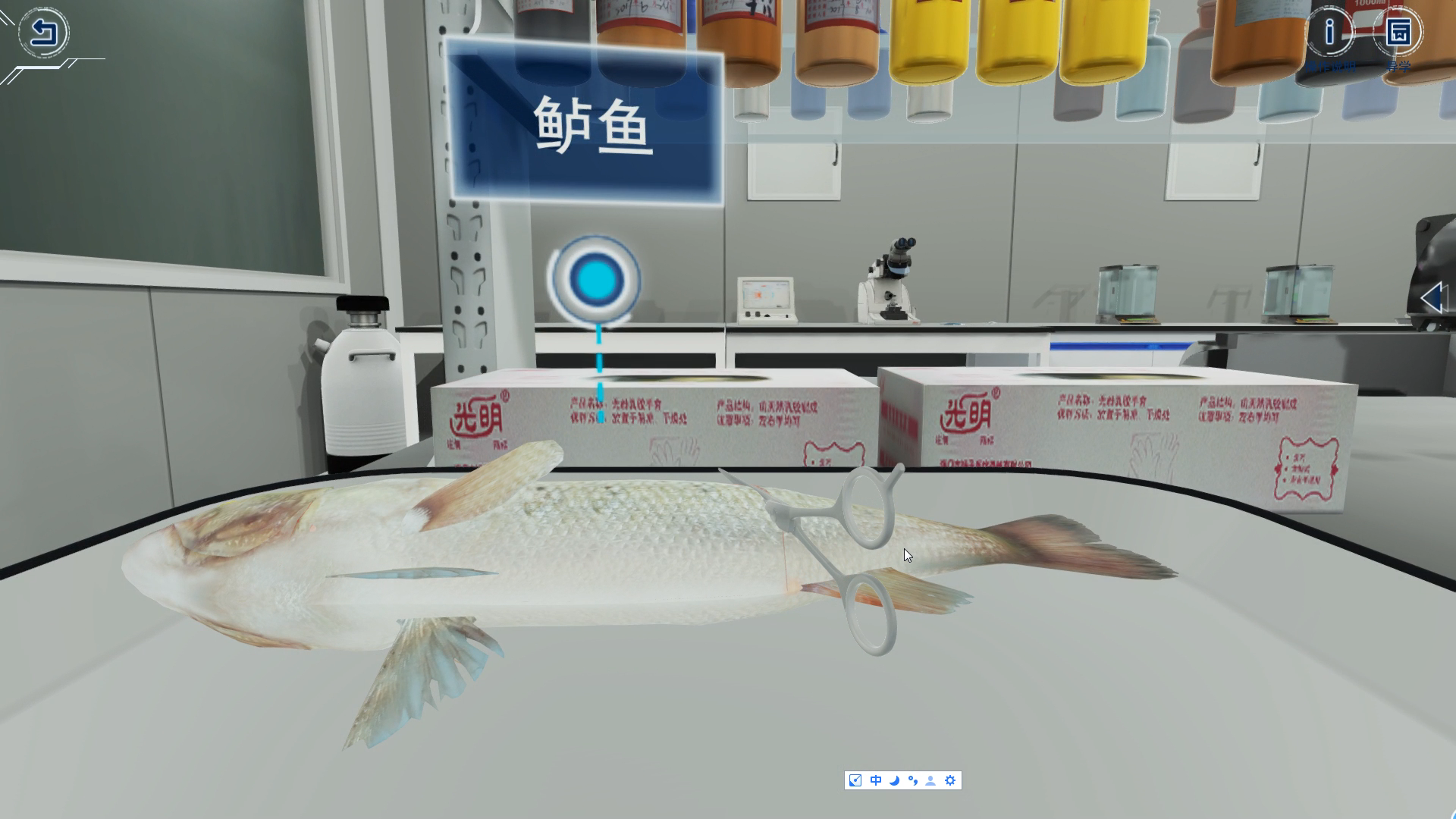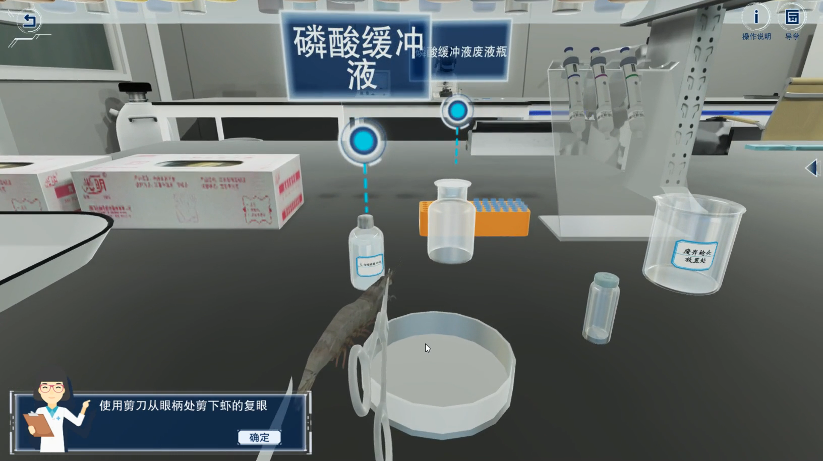 “电镜生物样品模拟制备实验”针对电镜生物样品实际制备过程步骤多、耗时长、毒性大、高压操作危险大、所需设备昂贵等弊端,采用动画制作、三维建模、虚拟现实等信息技术手段,开发了具有自主知识产权的虚拟仿真实验教学系统。该系统分别以鲈鱼肝脏和对虾复眼为材料模拟了透射电镜和扫描电镜生物样品制备的实验环境和实验操作,真实再现仪器及设备的工作流程和状态,包括13个知识点和33个交互性操作。该实验是生物学、医学、农学相关学科领域结构、病理、生理、成分和发育等研究与分析的必备手段之一,适用于生物学、医学、农学相关专业学生和人员学习使用。目前已在国家虚拟仿真实验教学课程共享平台发布,远程共享,以期为更多的使用者提供服务。